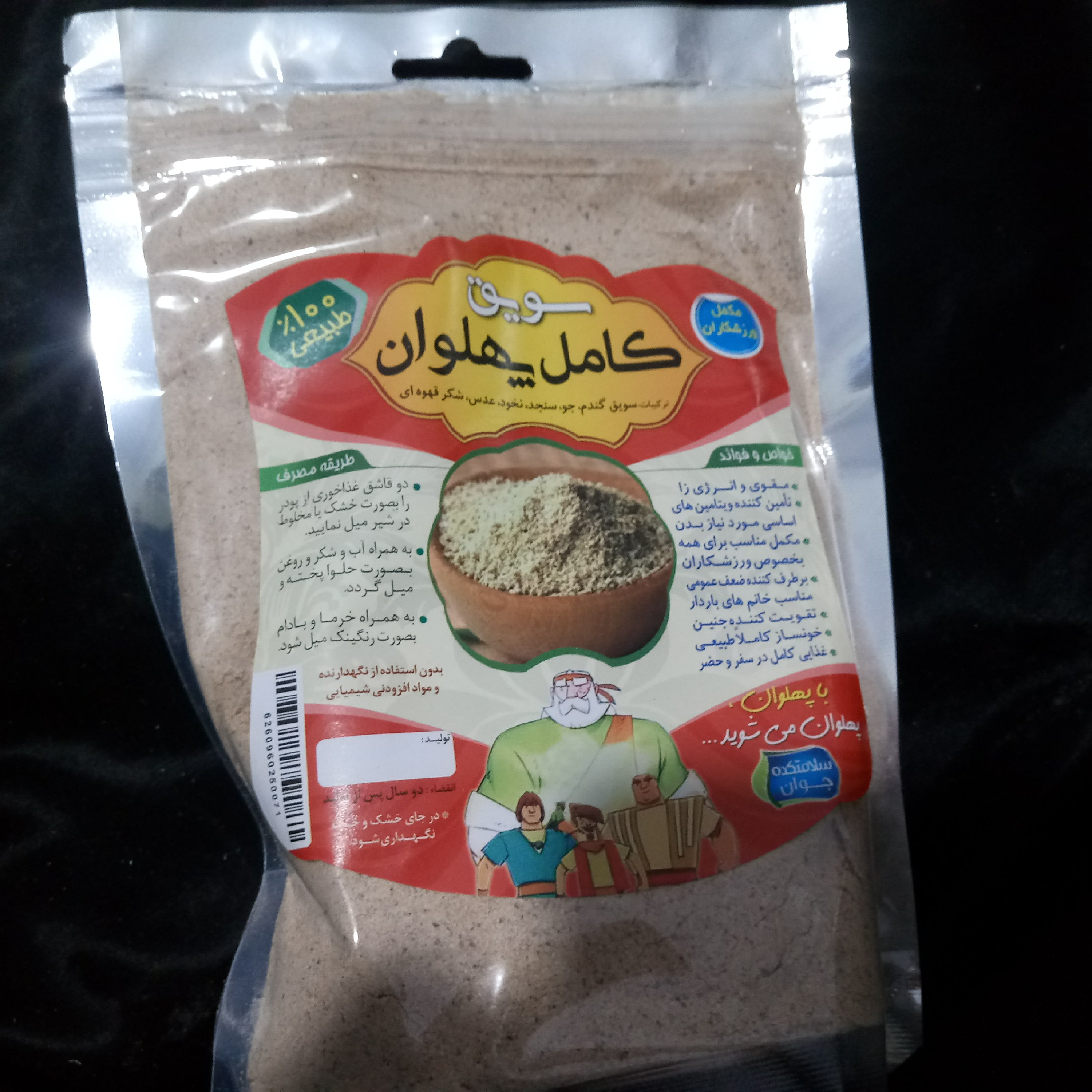 سویق کامل ترکیبات سویق گندم، جو، سنجد، نخود، عدس، شکر قهوه ای میتوان بصورت خشک یا حل شده در شیر میل کرد بهمراه آب و روغن و شکر مثل حلوا پخته و میل شود بهمرا خرما و باوام مثل رنگینک تهیه و میل شود