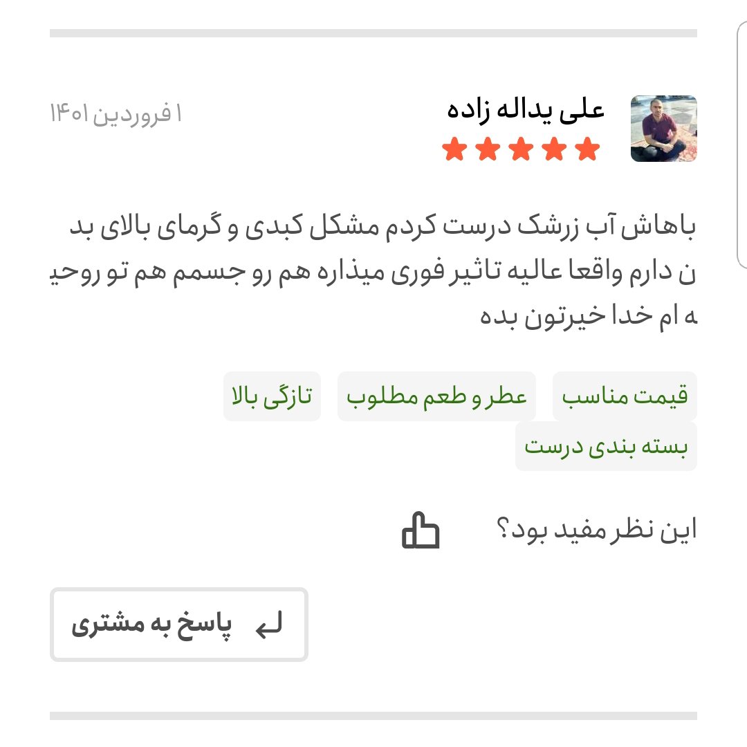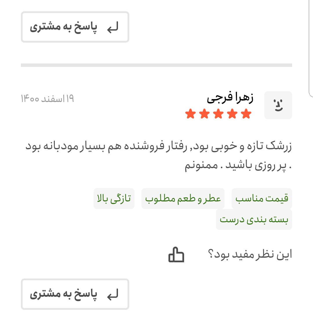 زرشکی خوش طعم ، تازه ، گوشتی 😋 باتوجه به نوع برداشت ، زرشک به دو دسته پفکی و اناری تقسیم میشه. زرشک اناری زودتر خشک و روانه بازار میشه اما آماده شدن زرشک پفکی به زمان بیشتری نیاز داره . ما در فروشگاه اعتماد یکی از بهترین زرشک های اناری موجود در بازار رو در بسته بندی بهداشتی عرضه میکنیم . این محصول بخاطر تازه بودن طعم ترشی داره و با رنگ روشن خودش تکمیل کننده غذای دل چسب شماست و بدون شک میتونید بهترین پلو فامیل رو برای مهمونی هاتون آماده کنید😊💪 این محصول تا یک ماه ضمانت داره یعنی اگه رضایتتون فراهم نشد مبلغ به صورت کامل به حسابتون واریز میشه پس با خیال راحت خرید کنید 😊🌸 جهت مشاوره و خرید عمده داخل گفتگو پاسخگو هستیم ...