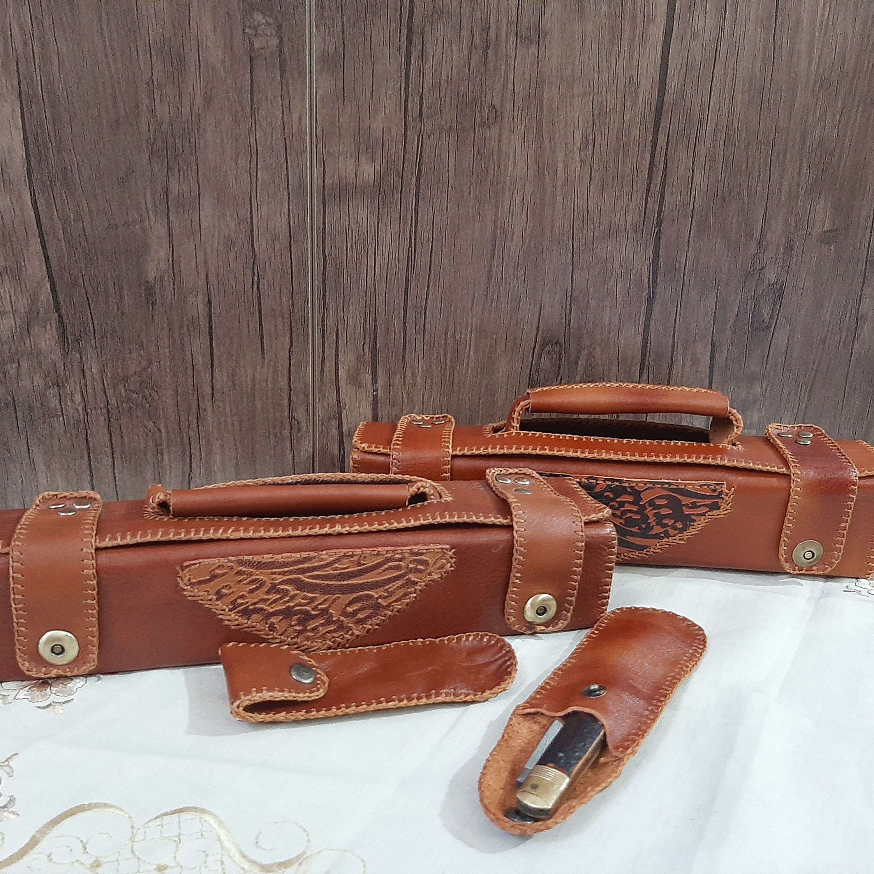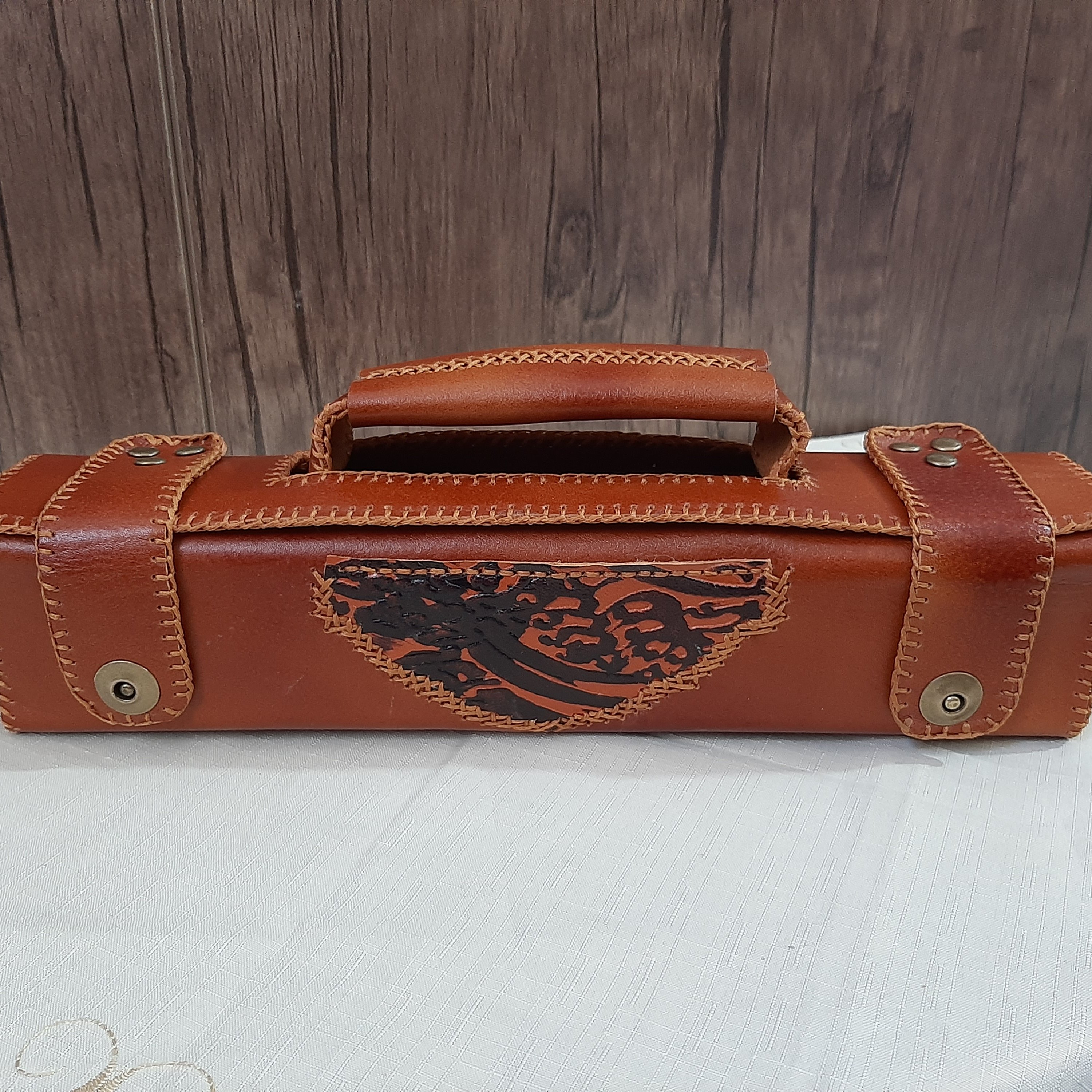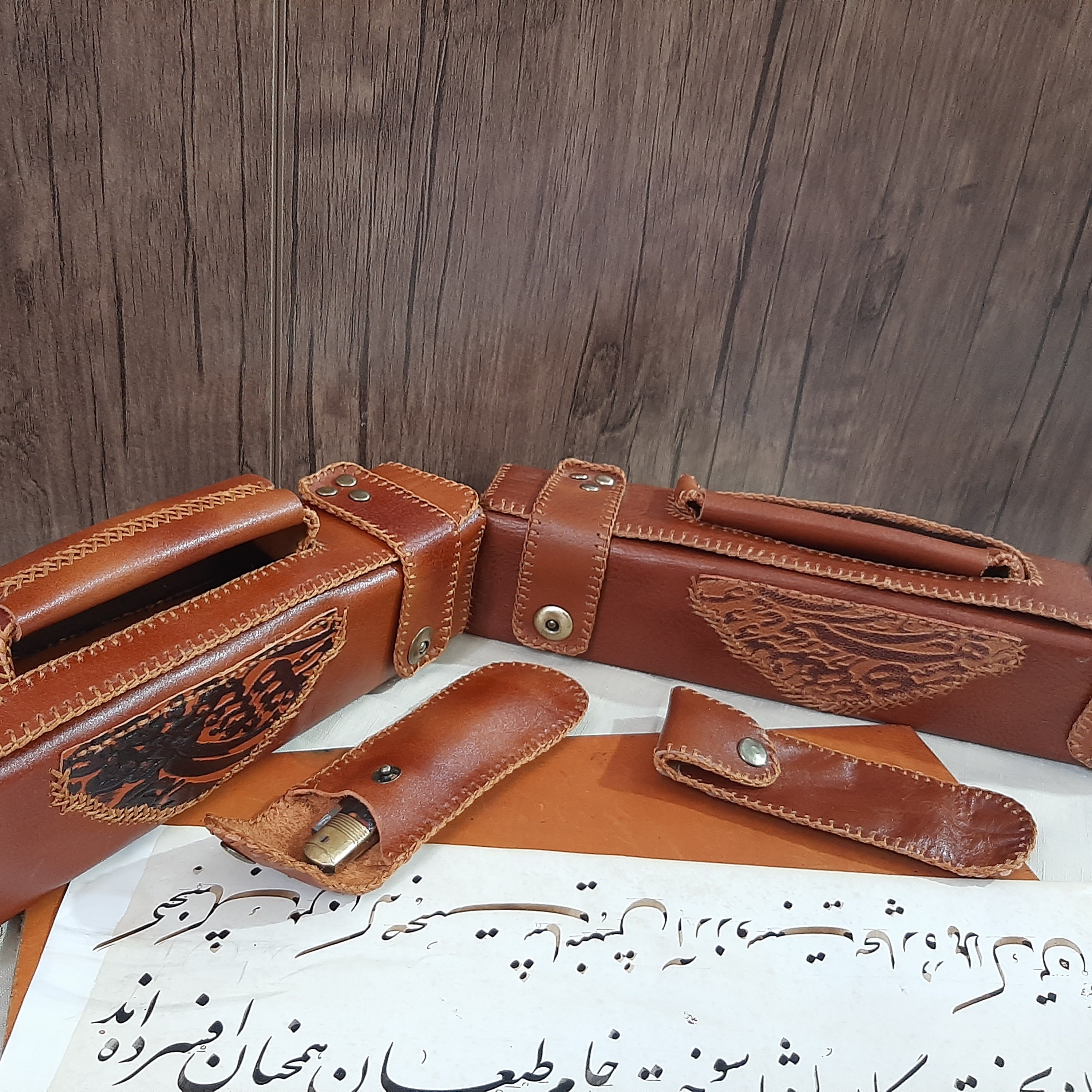 محصولی زیبا و جادار این محصول از بهترین و با کیفیت ترین چرم گاوی یعنی چرم گاوی سوپر تهیه شده با دستانی هنرمند دوخت شده با دوختی تمیز و زیبا جادار قابلیت گذاشتن قلم و مرکب و دوات و جوهر را به صورت یکجا دار . داری دسته برای حمل آسان و تزیین شده با چرم سیاه مشق که زیبایی و جلوه این کار را برای خطاطان و خوشنویسان عزیز چند برابر کرده