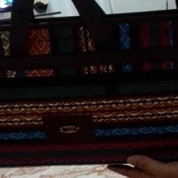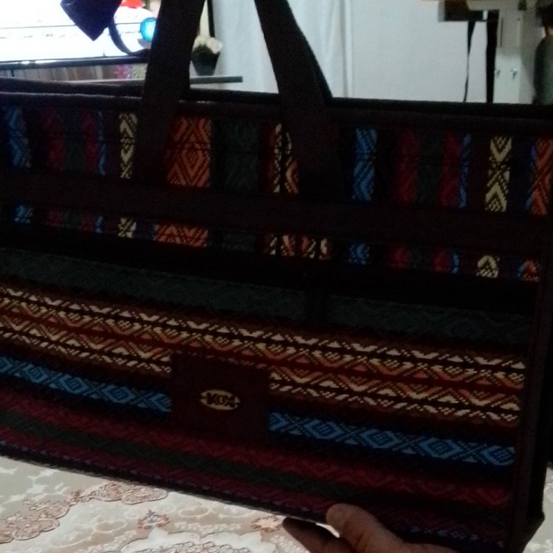 محصول بسیار سبک و جادر، ضد آب، داری بند دوشی، رنگ قهوهای طرح جاجیم سنتی