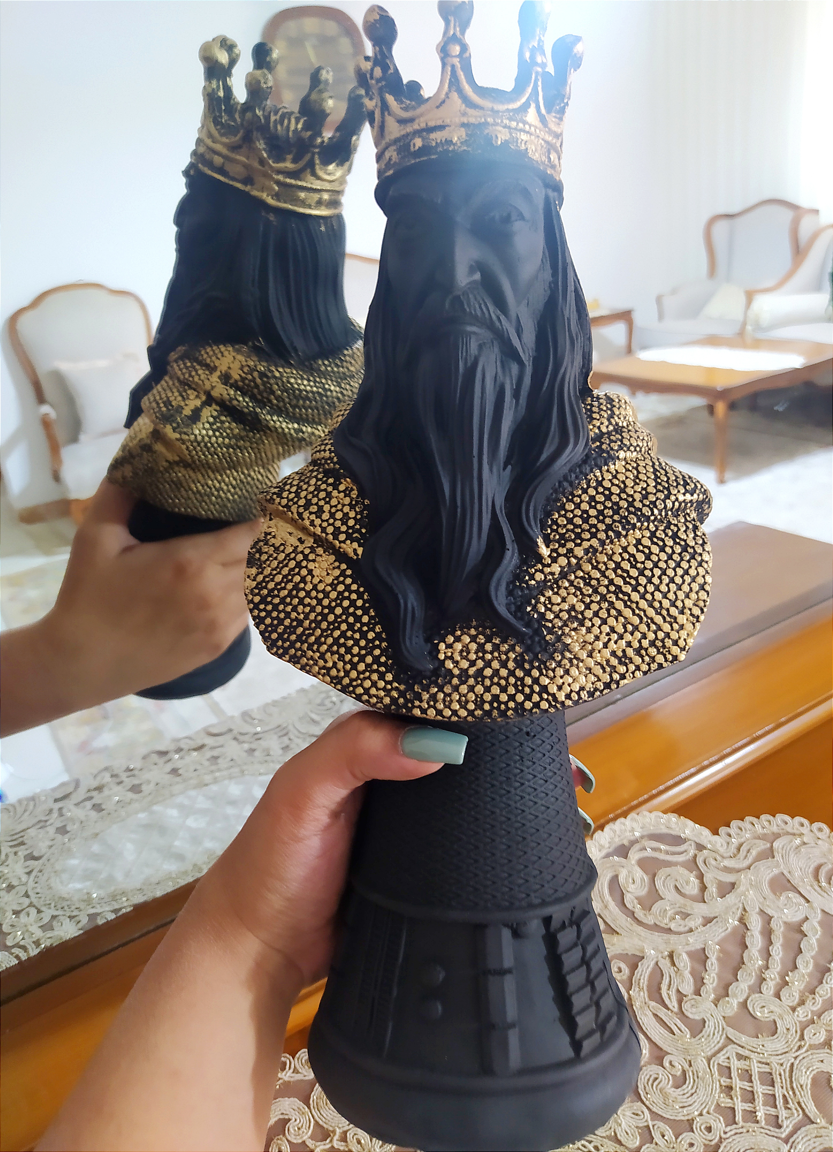 مجسمهی پلیاستری شاه و ملکه، یه انتخاب لاکچری برای دکورهایی که خاص بودن حرف اولو میزنه 👑🔥 طراحی باابهت و جزئیات ظریف این ست، حس قدرت و اصالت رو به فضای خونه یا محل کارت میاره 🎨✨ ارتفاع 34 سانتیمتری باعث شده کاملاً چشمگیر باشن و روی کنسول، شلف یا ویترین حسابی بدرخشن 📏👀 این مجسمهها در چهار رنگ شیک سفید طلایی، مشکی طلایی، نقرهای و طلایی عرضه میشن 🤍🖤✨ جنس پلیاستر باکیفیت، هم مقاومه هم خوشفرم و برای استفادهی طولانیمدت کاملاً ایدهآله 💪🌟 یه گزینهی عالی برای هدیه دادن به آدمهای خاص و خوشسلیقه 🎁👑 اگه میخوای دکورت یه حس سلطنتی و متفاوت داشته باشه، این ست انتخاب بینقصته ✔️🔥