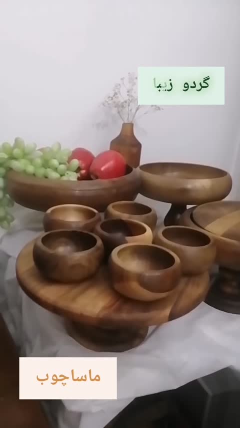 سرویس چوبی سه تیکه شامل میوه خوری قطر 30سانت شکلات خوری قطر 25سانت شیرینی خوری دوطبقه قطر 25و 30