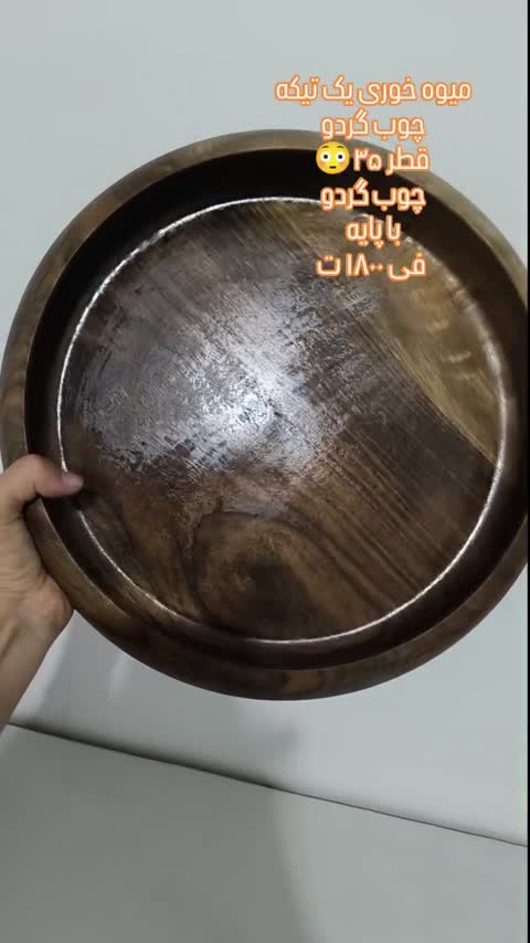جامیوه ای چوبی پایه دار چوب گردو قطر 30 سانت ارتفاع 6 سانت میوه خوری خمره ای پایه دار میوه خوری پایه دار رنگشون قهوه ای تیره و روشن و متوسط داره اگر رنگ خاصی مدنظرتون قبل سفارش تو چت بهم بگین و موجودی بگیرید